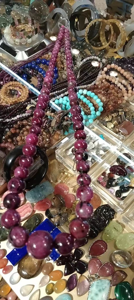 小,紫石榴项链。中,碧玺项链。大,发晶项链
